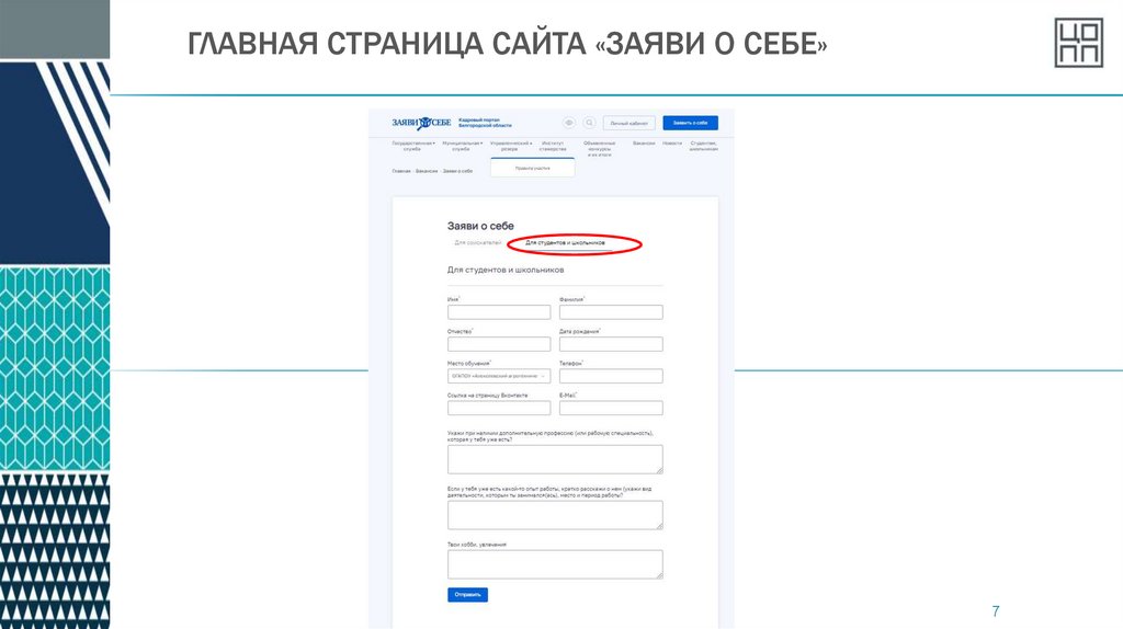 ГЛАВНАЯ СТРАНИЦА САЙТА «ЗАЯВИ О СЕБЕ»7