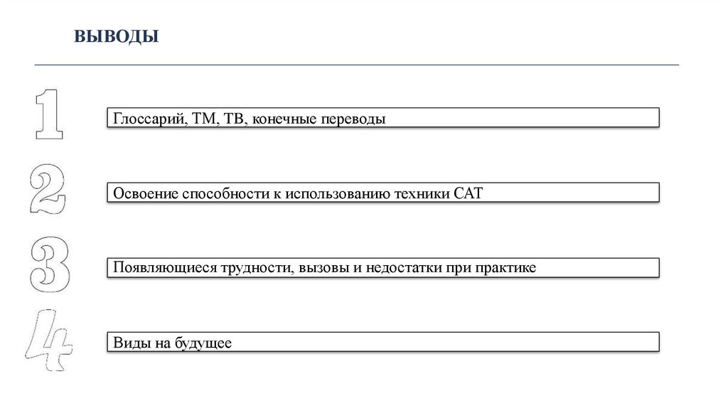 ВЫВОДЫГлоссарий, ТМ, TB, конечные переводы