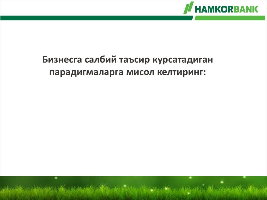 Бизнесга салбий таъсир курсатадиганпарадигмаларга мисол келтиринг:
