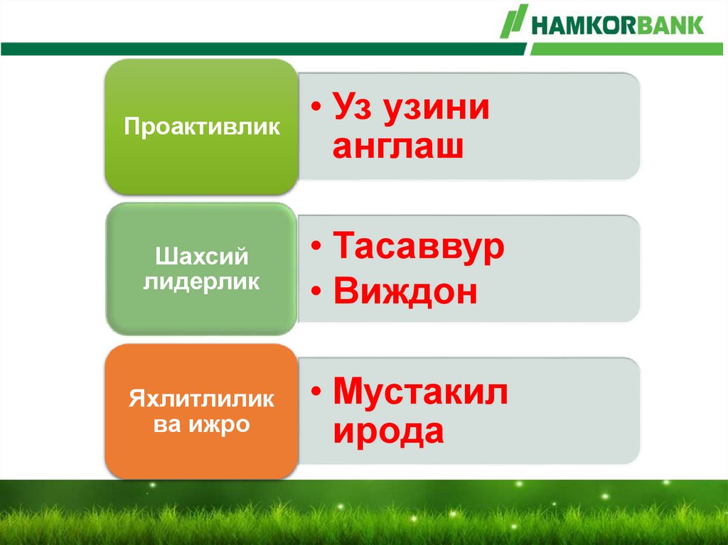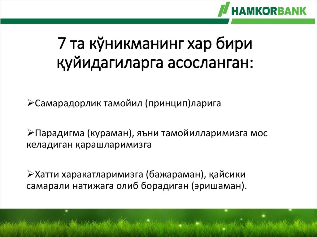7 та кўникманинг хар бириқуйидагиларга асосланган:
