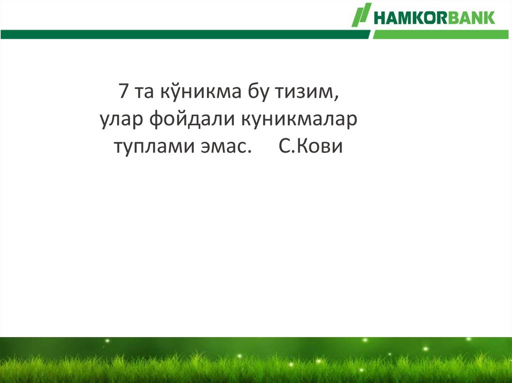 Ходиимларни бошқариш. Муваффақиятли инсонларнинг 7 кўникмаси китоби асосида