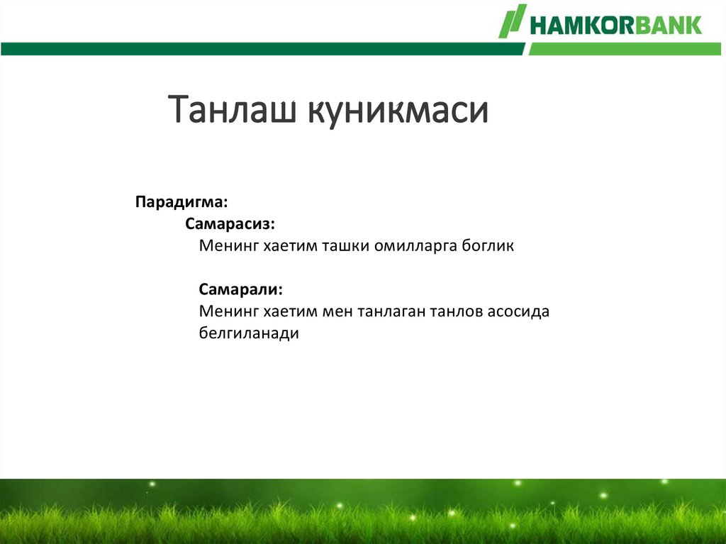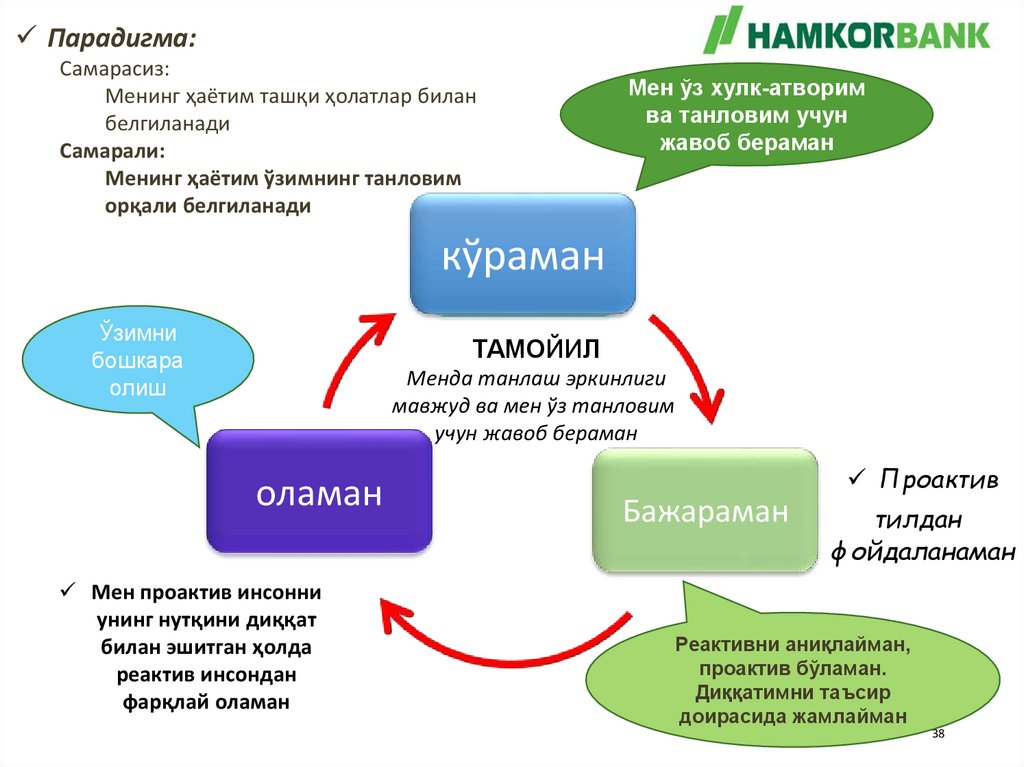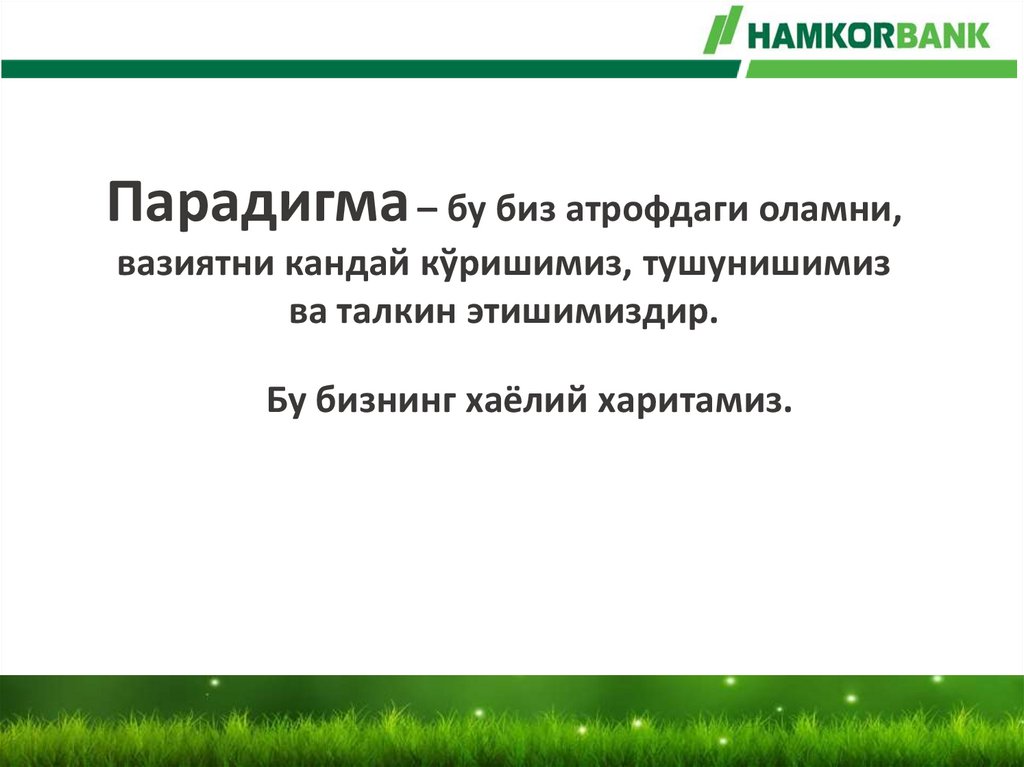 Парадигма – бу биз атрофдаги оламни,вазиятни кандай кўришимиз, тушунишимиз