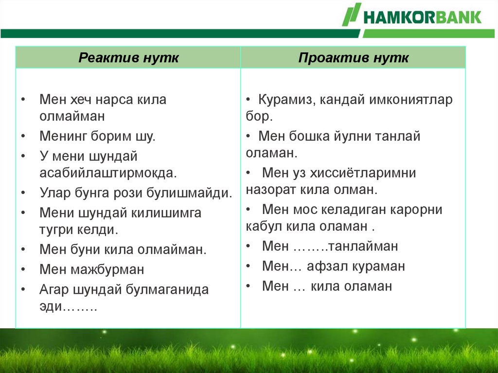 Парадигма (кураман), яъни тамойилларимизга мос