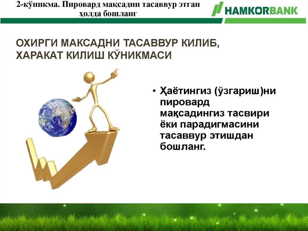 • Қўйилган мақсадга