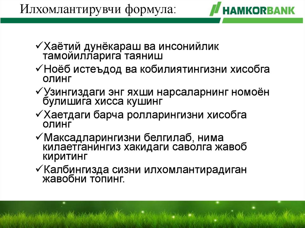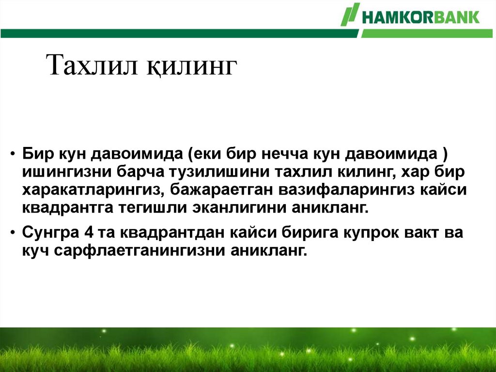 • Ҳар куни бажараман