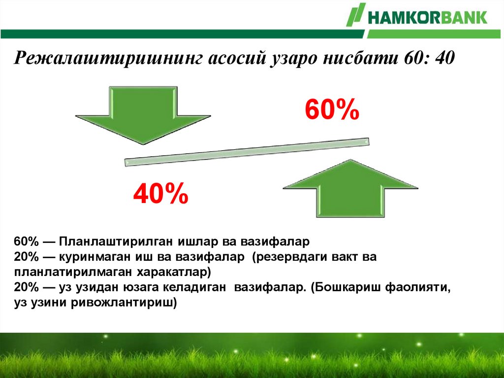 Режалаштиришнинг асосий узаро нисбати 60: 4060%