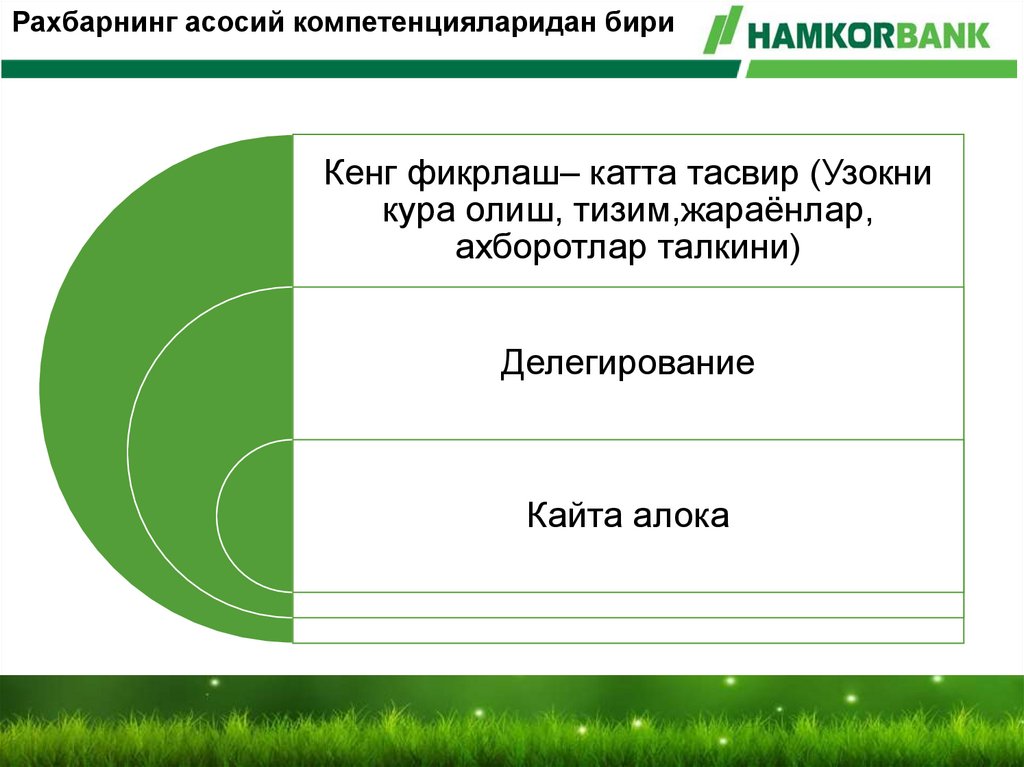 Рахбарнинг асосий компетенцияларидан бириКенг фикрлаш– катта тасвир (Узокни