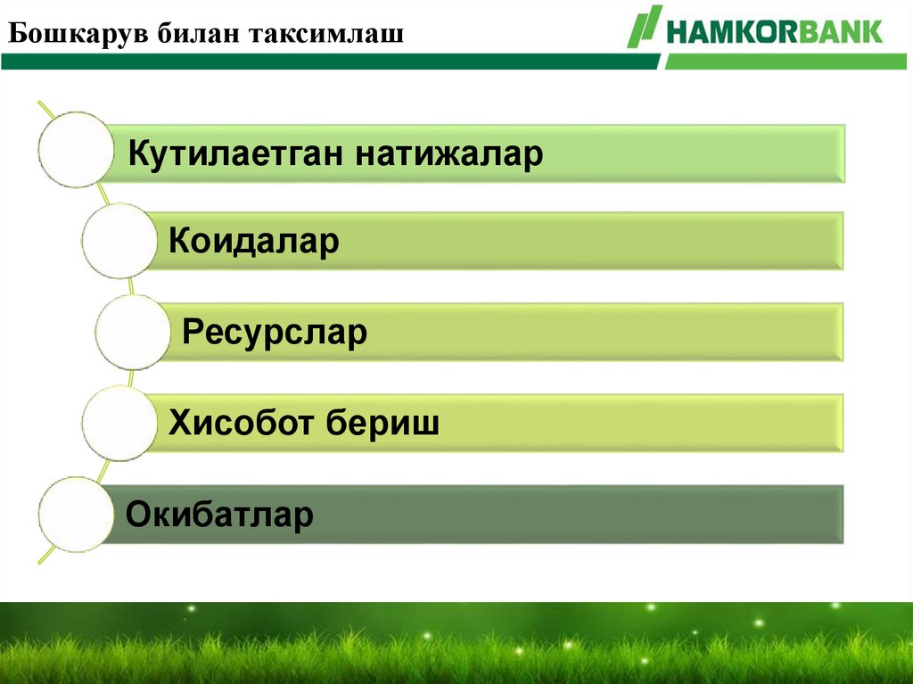 Бошкарув билан таксимлашКутилаетган натижалар