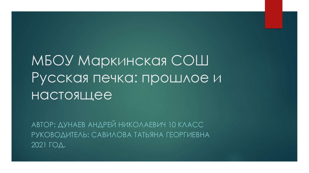 МБОУ Маркинская СОШРусская печка: прошлое и настоящее