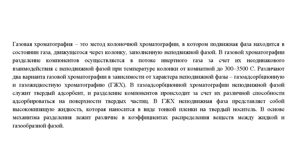 взаимодействия с неподвижной фазой при температуре колонки от комнатной до 300–3500 С. Различают