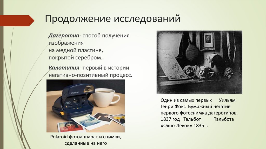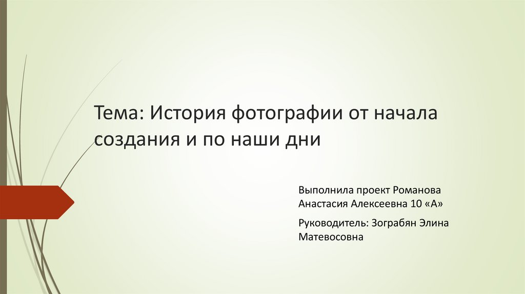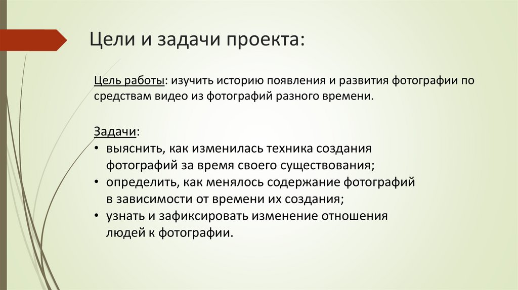 Цели и задачи проекта:Цель работы: изучить историю появления и развития фотографии по