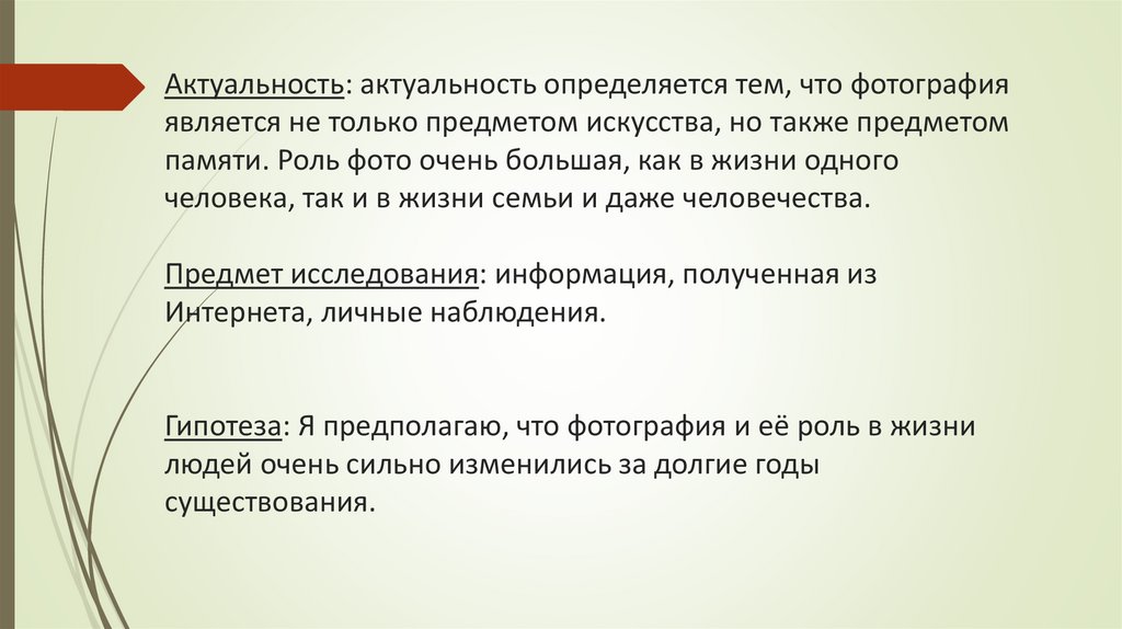Гипотеза: Я предполагаю, что фотография и её роль в жизни