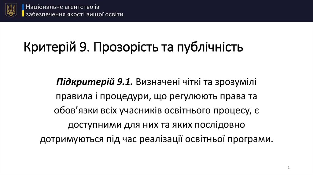 Критерій 9. Прозорість та публічністьПідкритерій 9.1. Визначені чіткі та зрозумілі