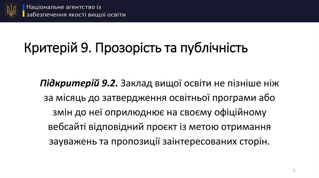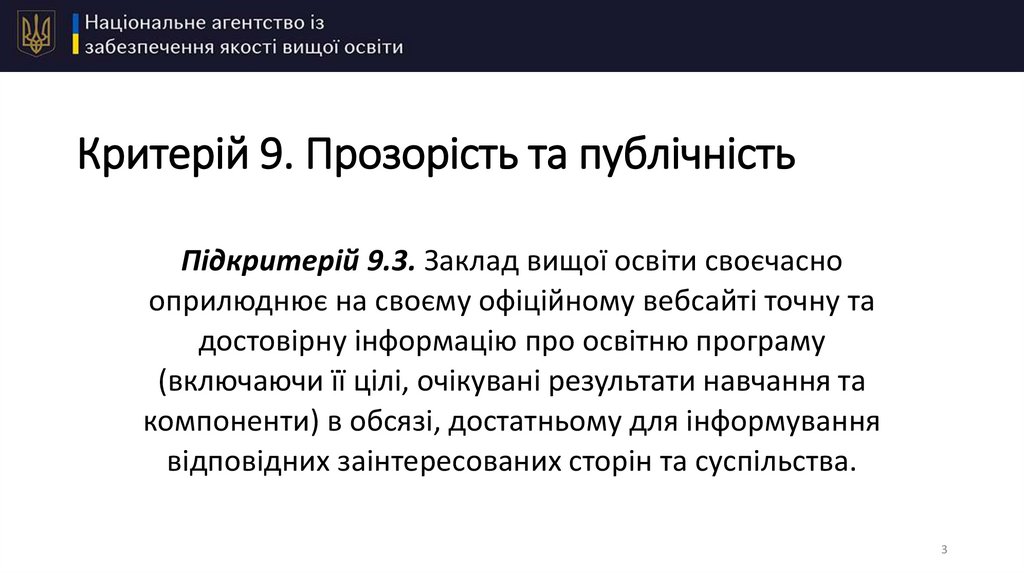 Критерій 9. Прозорість та публічністьПідкритерій 9.2. Заклад вищої освіти не пізніше ніж
