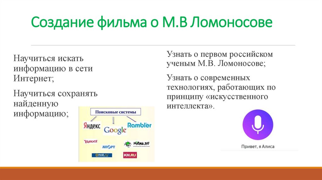 Создание фильма о М.В ЛомоносовеНаучиться искать