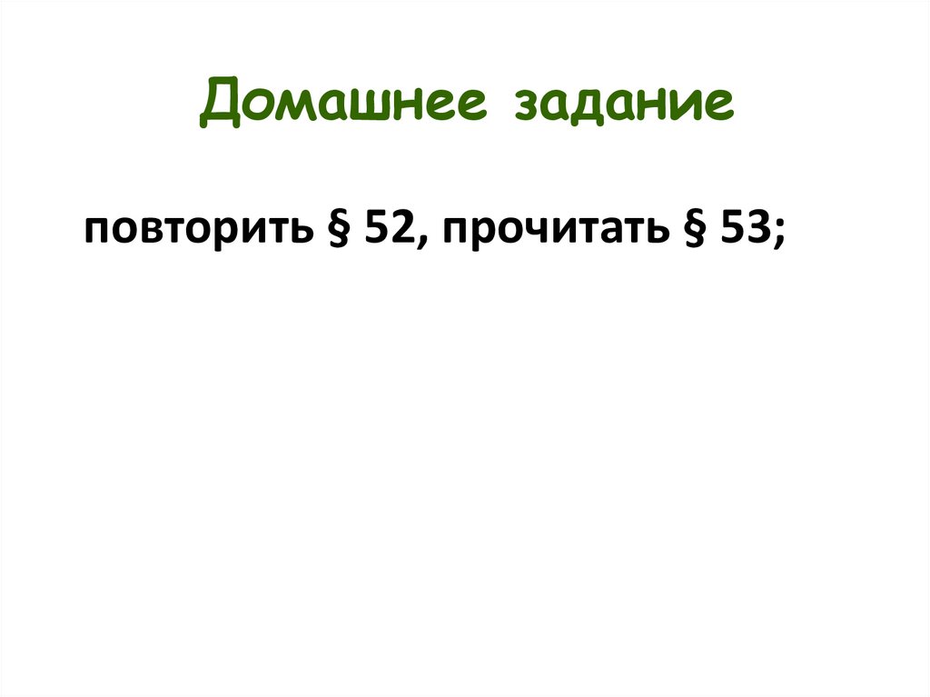 Домашнее заданиеповторить § 52, прочитать § 53;