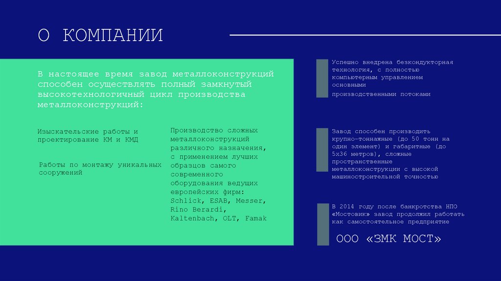О КОМПАНИИВ настоящее время завод металлоконструкций