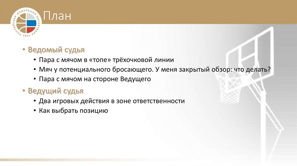 План• Ведомый судья