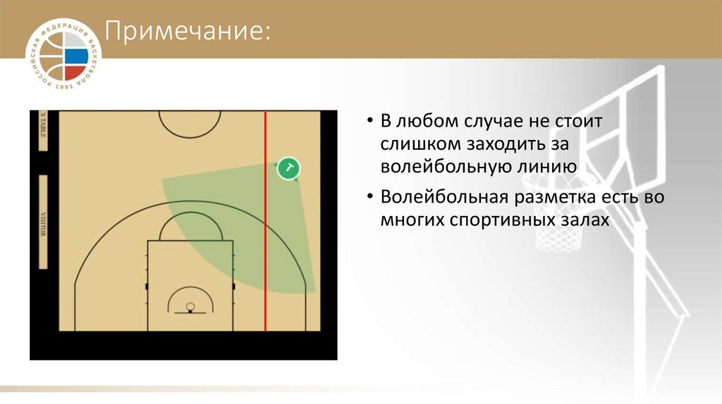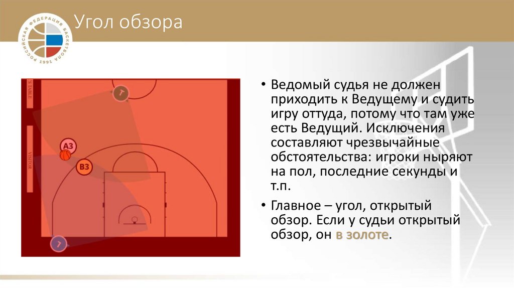 Угол обзора• Ведомый судья не должен
