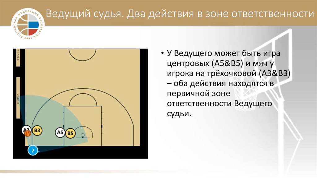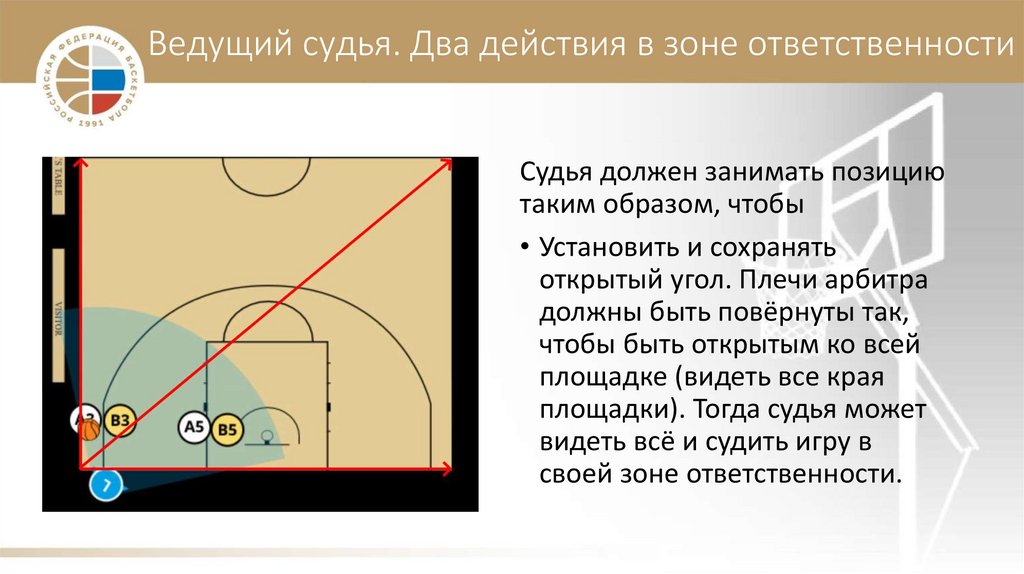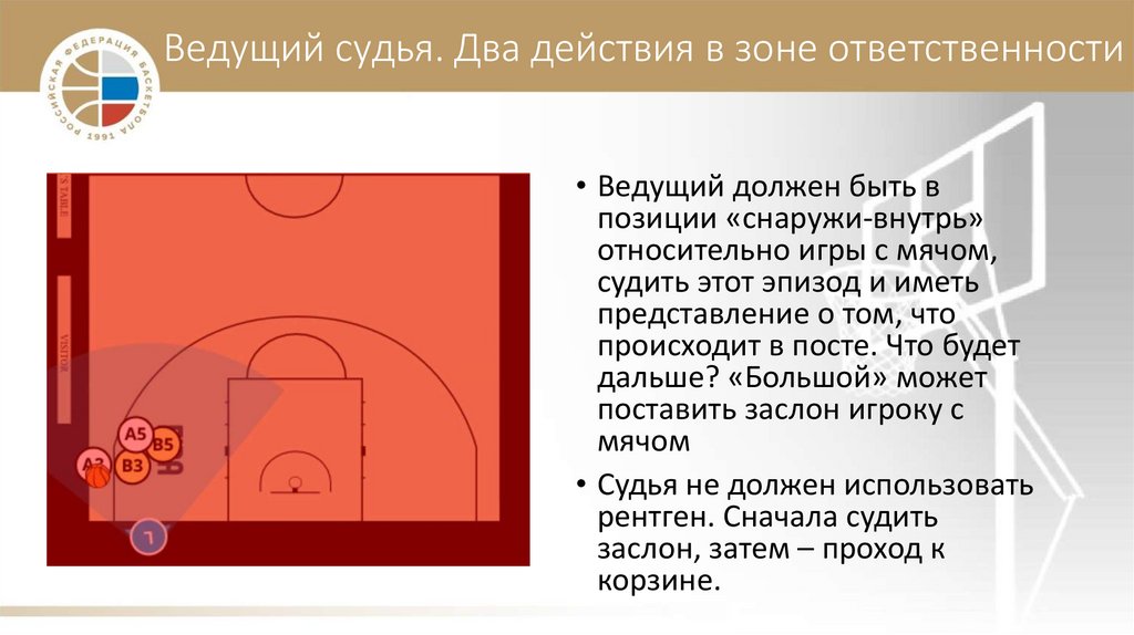 Ведущий судья. Два действия в зоне ответственности• Ведущий должен быть в