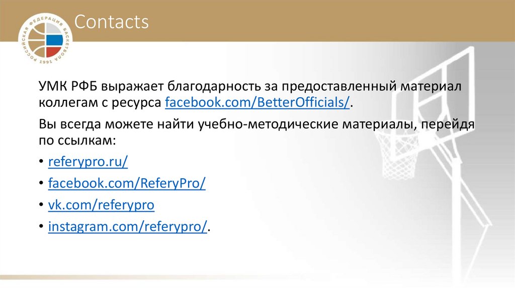 ContactsУМК РФБ выражает благодарность за предоставленный материал