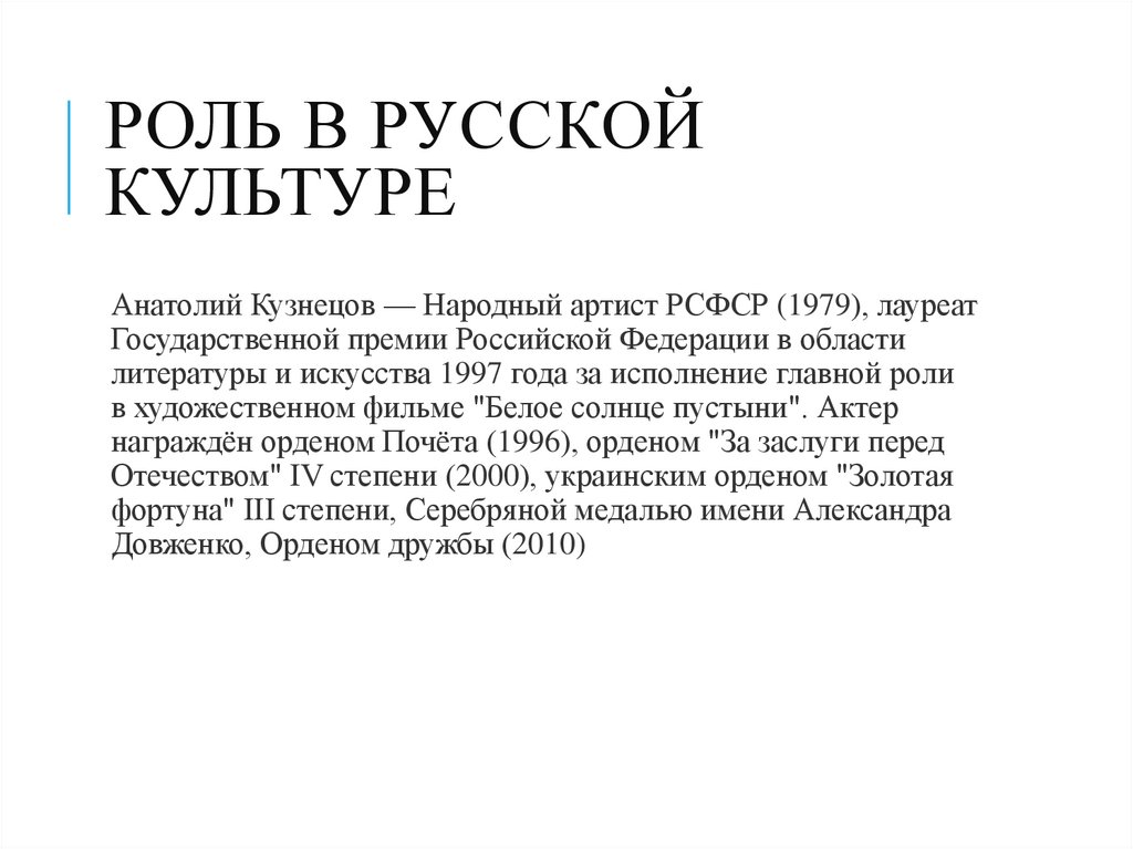 РОЛЬ В РУССКОЙКУЛЬТУРЕ
