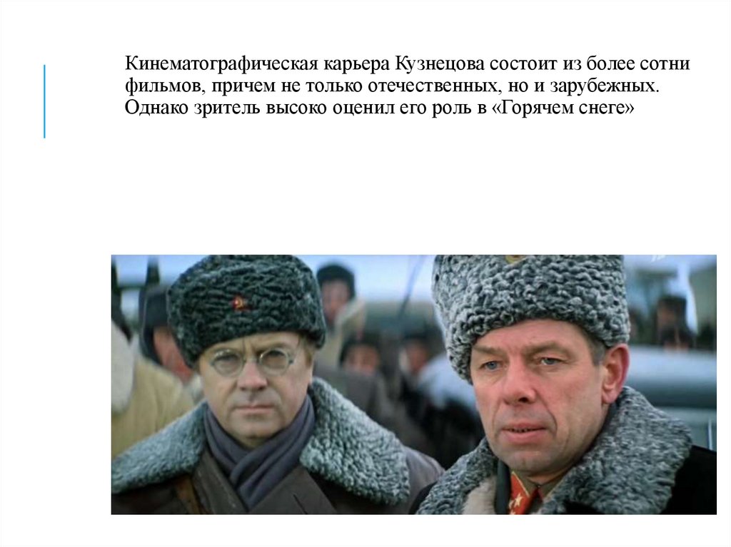 Однако зритель высоко оценил его роль в «Горячем снеге»