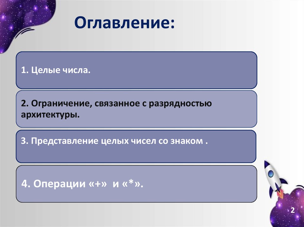 Оглавление:1. Целые числа.