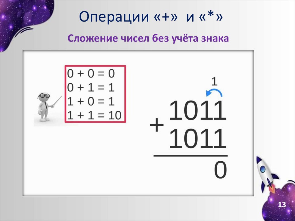 Операции «+» и «*»Сложение чисел без учёта знака