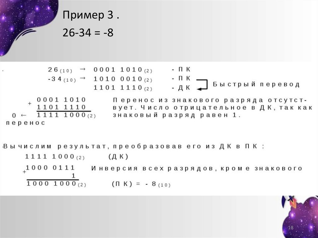 Пример 3 .26-34 = -8