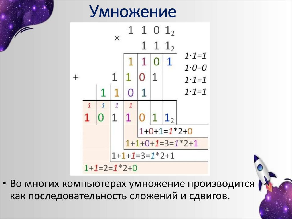 Умножение• Во многих компьютерах умножение производится