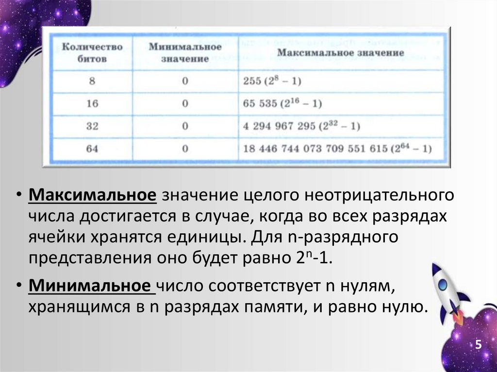 • Максимальное значение целого неотрицательногочисла достигается в случае, когда во всех разрядах