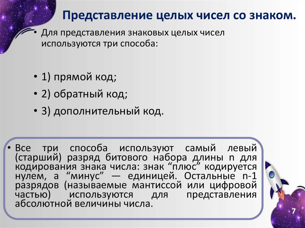 Представление целых чисел со знаком.• Для представления знаковых целых чисел