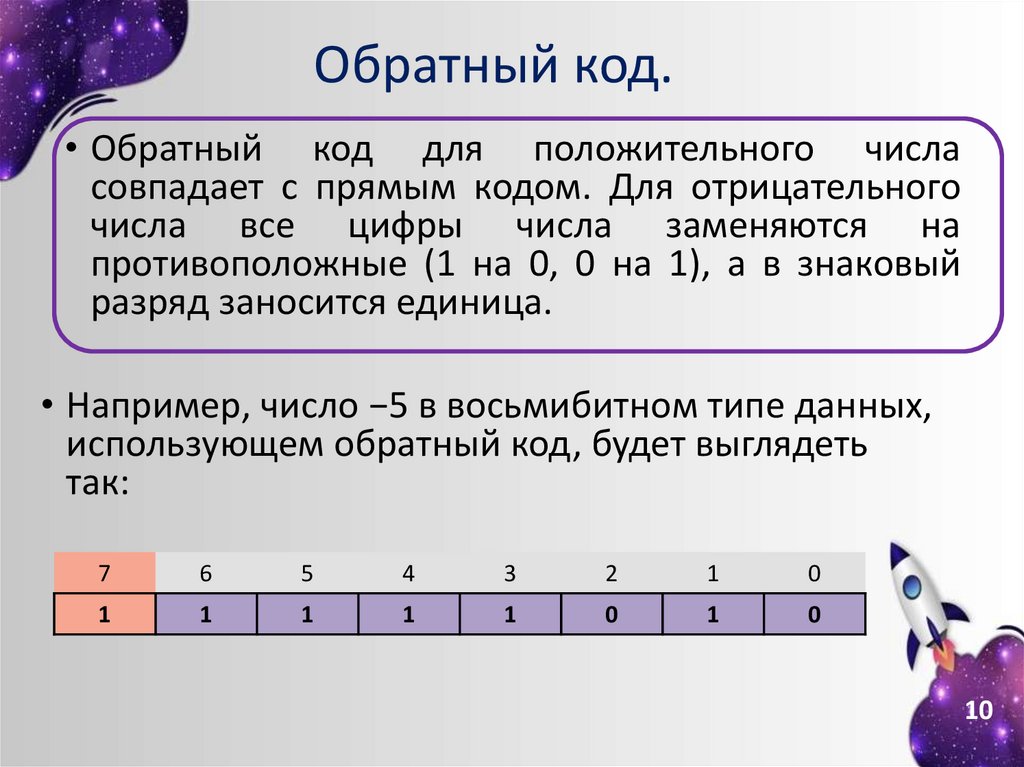 Обратный код.• Обратный код для положительного числа