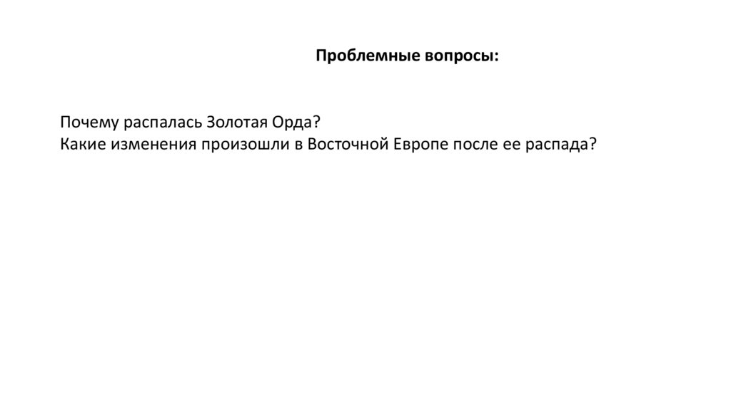 Проблемные вопросы:Почему распалась Золотая Орда?