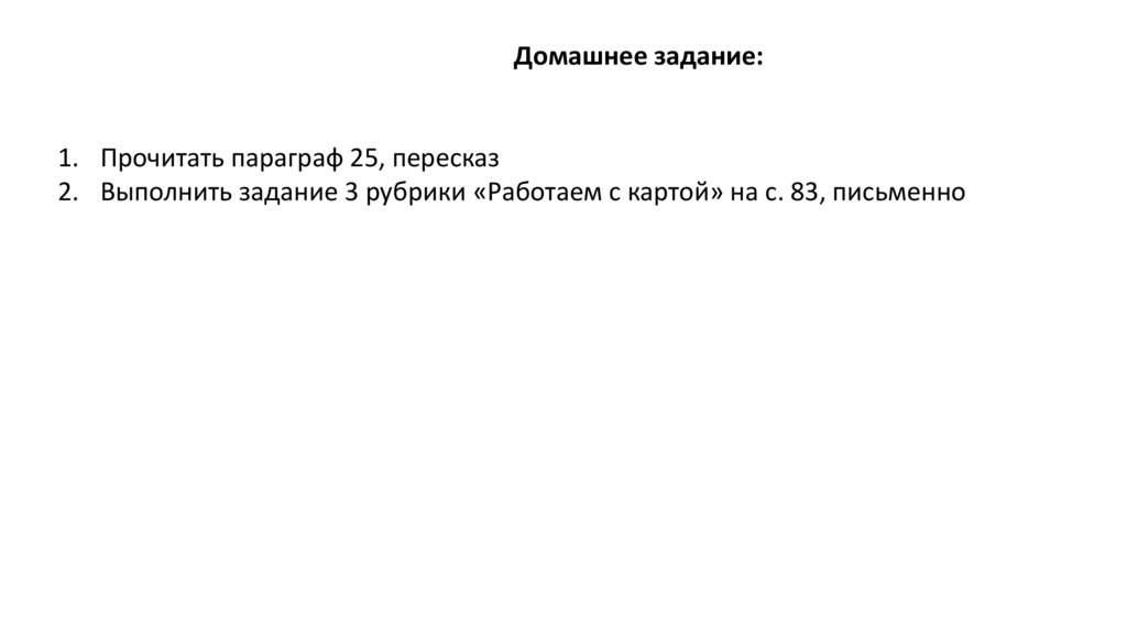 Домашнее задание:1. Прочитать параграф 25, пересказ