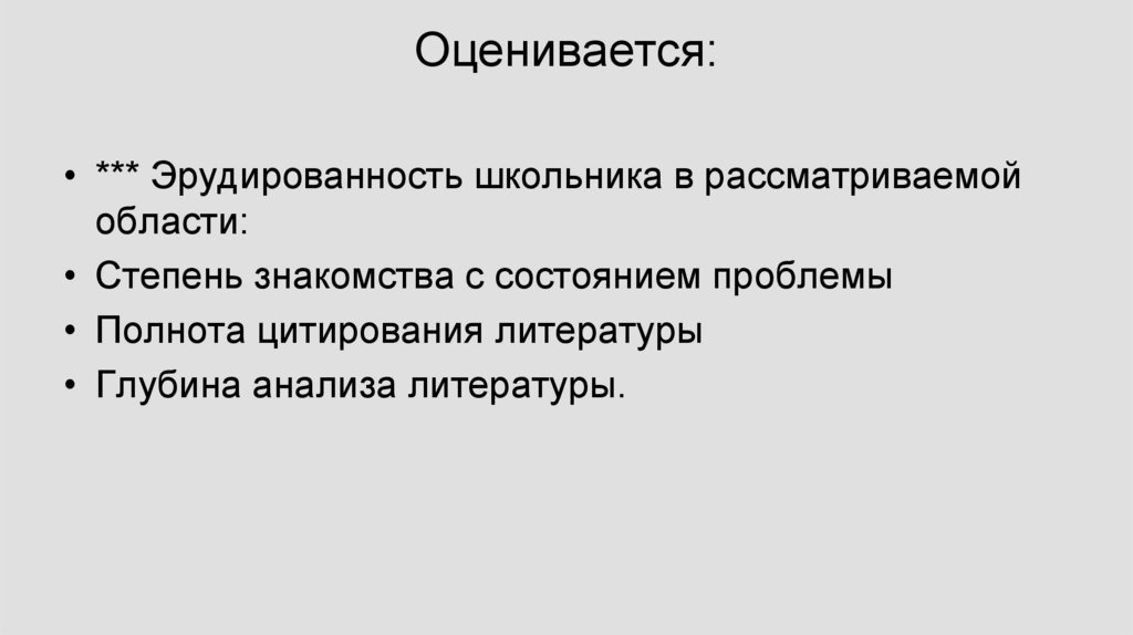 Оценивается:• *** Эрудированность школьника в рассматриваемой