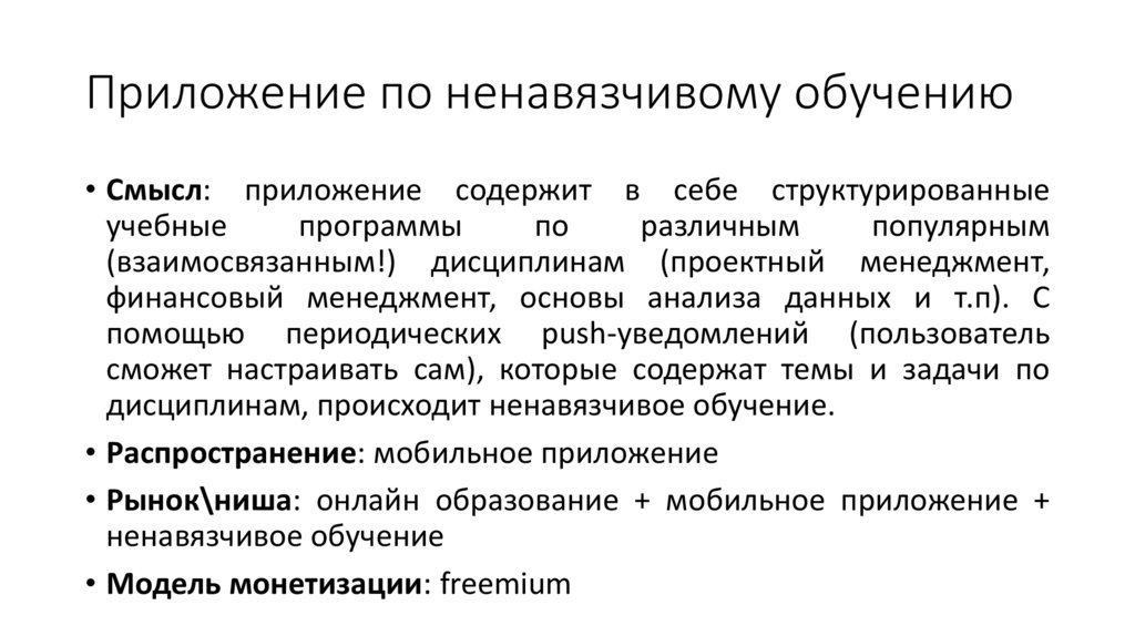 Приложение по ненавязчивому обучению• Смысл: приложение содержит в себе структурированные