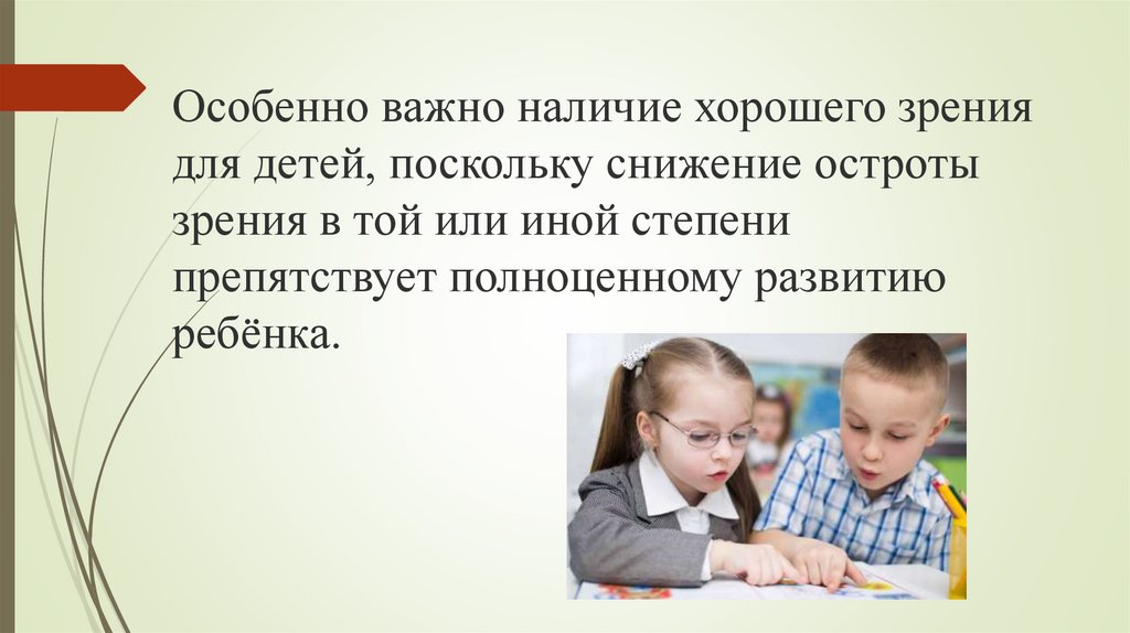 Особенно важно наличие хорошего зрениядля детей, поскольку снижение остроты