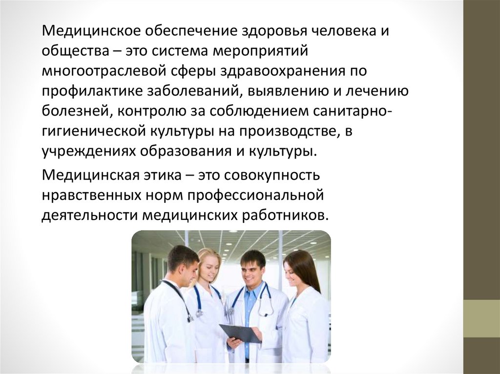 Медицинское обеспечение здоровья человека иобщества – это система мероприятий