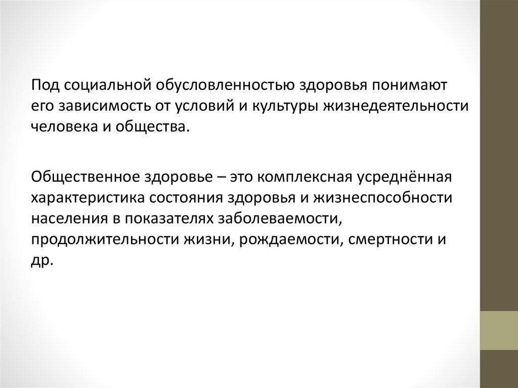 Под социальной обусловленностью здоровья понимаютего зависимость от условий и культуры жизнедеятельности