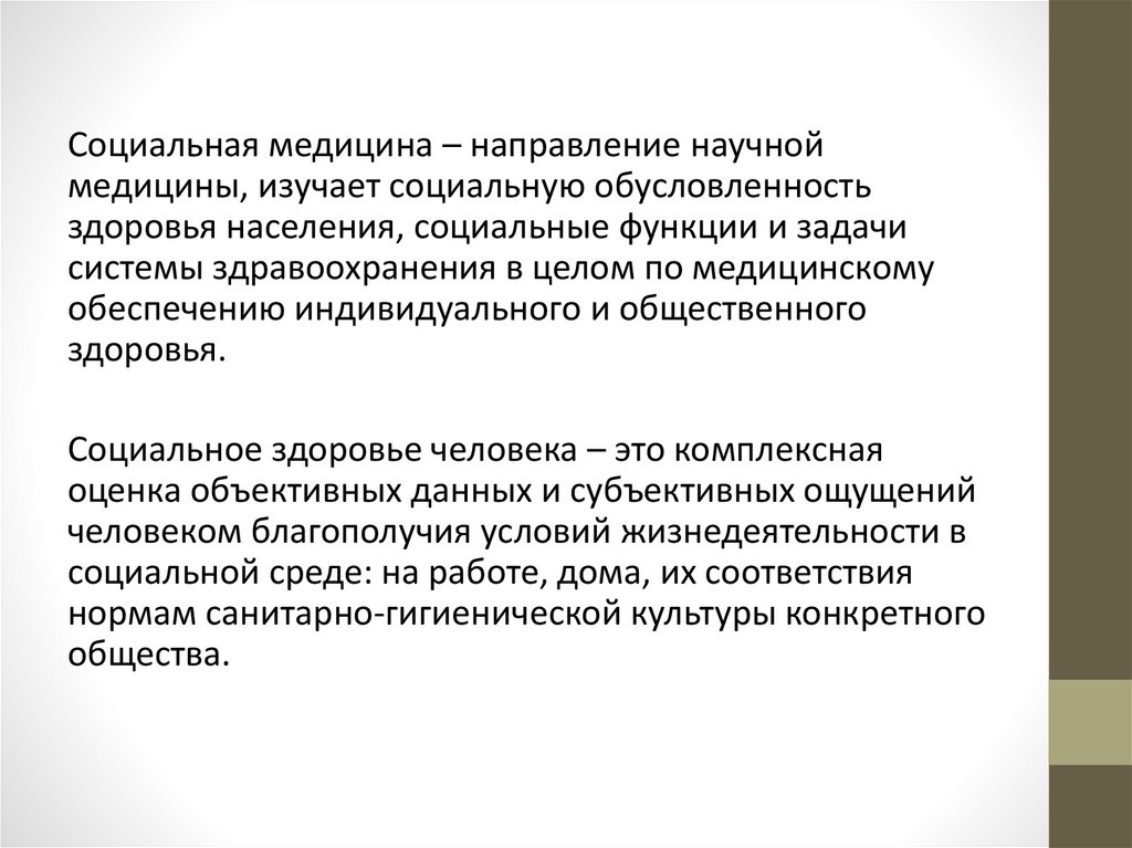 Социальная медицина – направление научноймедицины, изучает социальную обусловленность