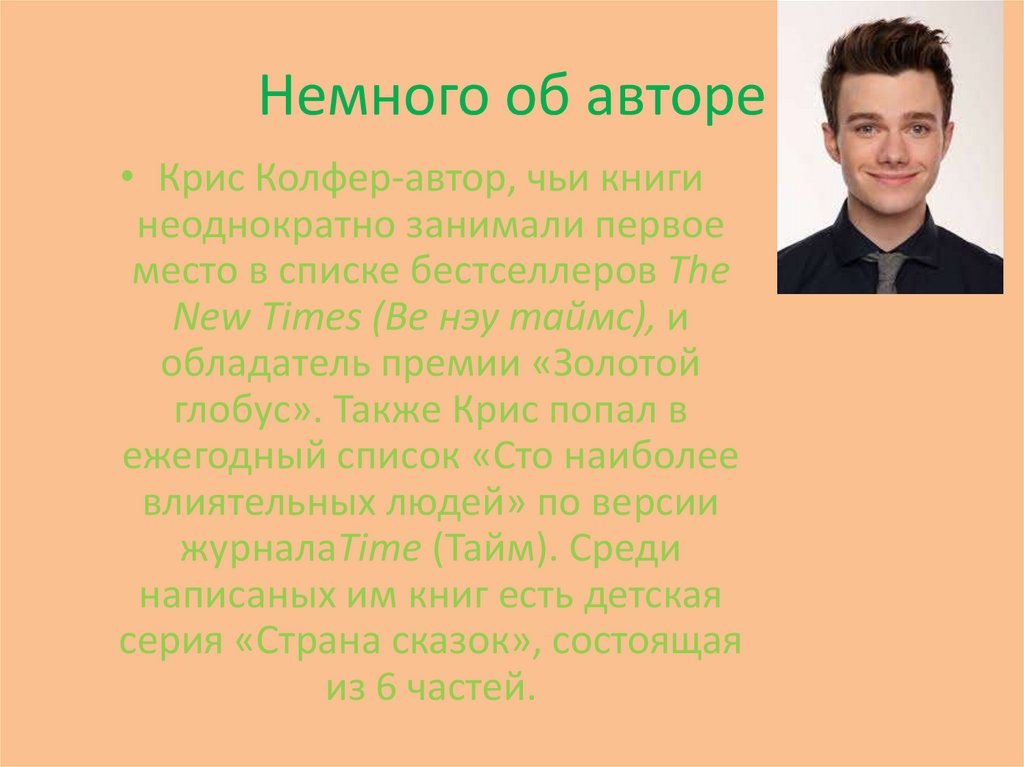 Немного об авторе• Крис Колфер-автор, чьи книги