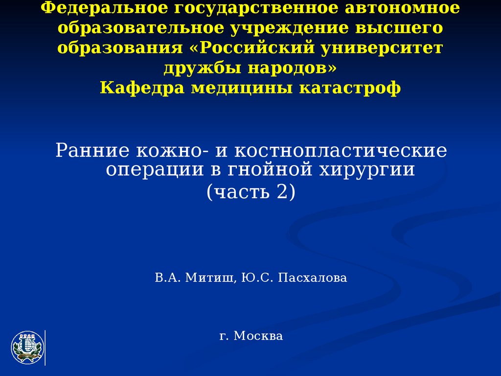 Ранние кожно- и костнопластические операции в гнойной хирургии