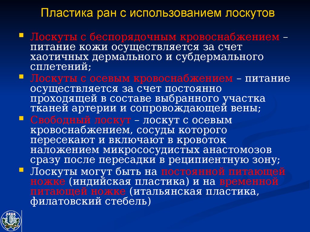 Пластика ран с использованием лоскутовЛоскуты с беспорядочным кровоснабжением –