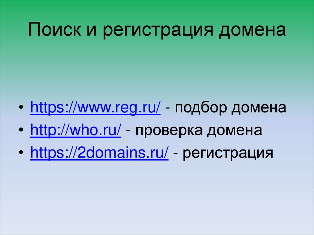 • https://www.reg.ru/ - подбор домена