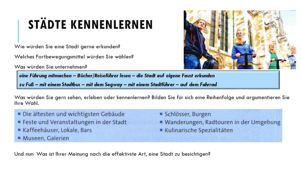 STÄDTE KENNENLERNENWie würden Sie eine Stadt gerne erkunden?