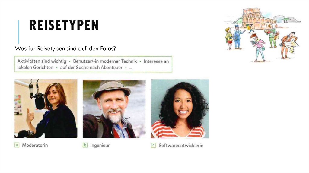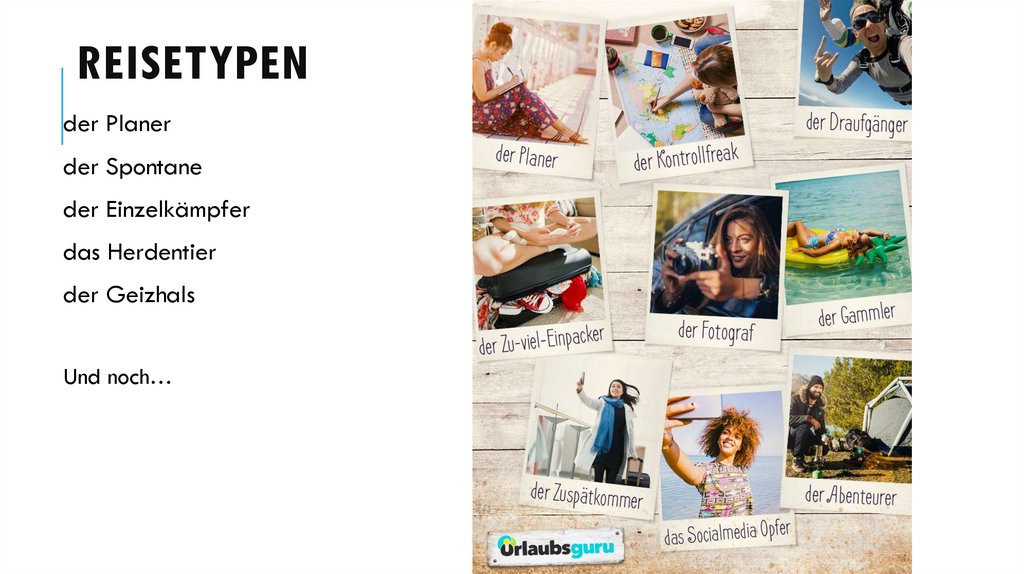 REISETYPENWas für Reisetypen sind auf den Fotos?