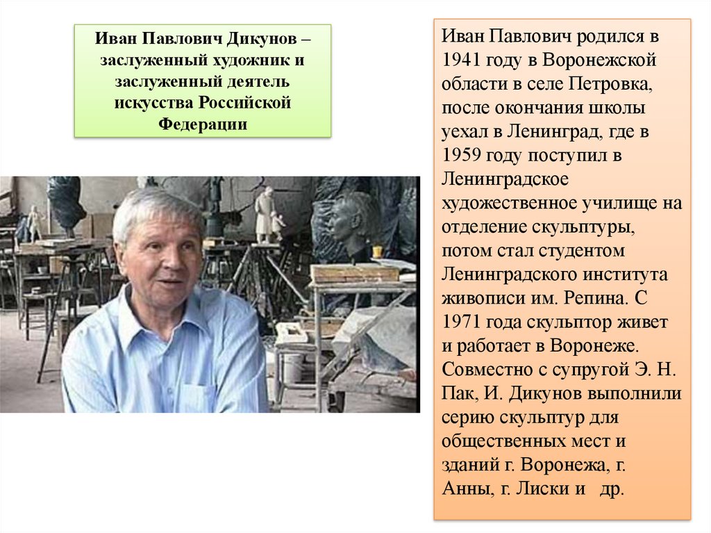 Иван Павлович Дикунов –заслуженный художник и