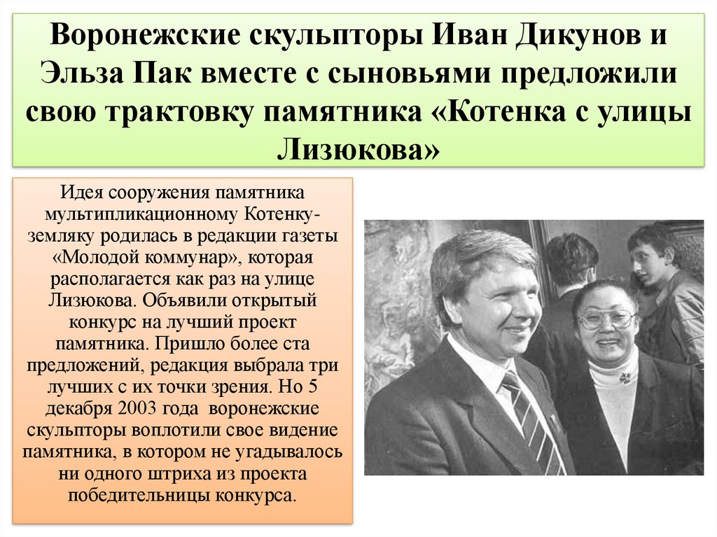 Воронежские скульпторы Иван Дикунов иЭльза Пак вместе с сыновьями предложили